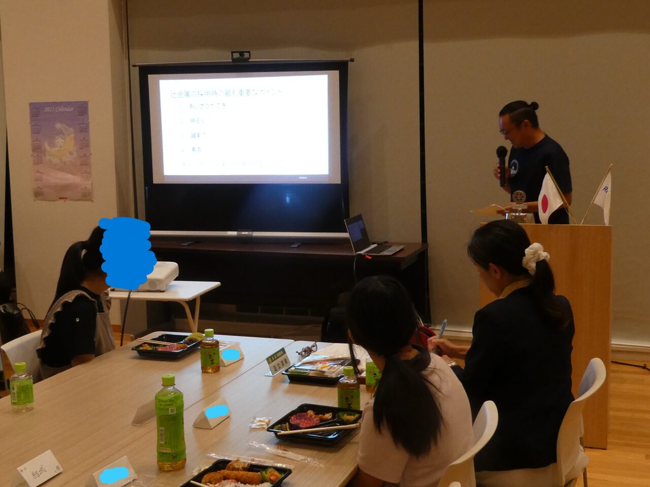 将来や自立について考えるということで、中学生や高校生が参加しました。中央ロータリークラブの会員さんからはスライドを使っての職業紹介や、社会人として大切なことを踏まえてお話ししてくれました。職業紹介では、整骨院やウェブデザイン、機械器具製造など多種多様な仕事を紹介してくれました。社会に出る前に身に付けておくべきことなどをわかりやすく教えてくれました。こどもたちは緊張感もありながら、説明のスライドを興味深そうに見ていました。