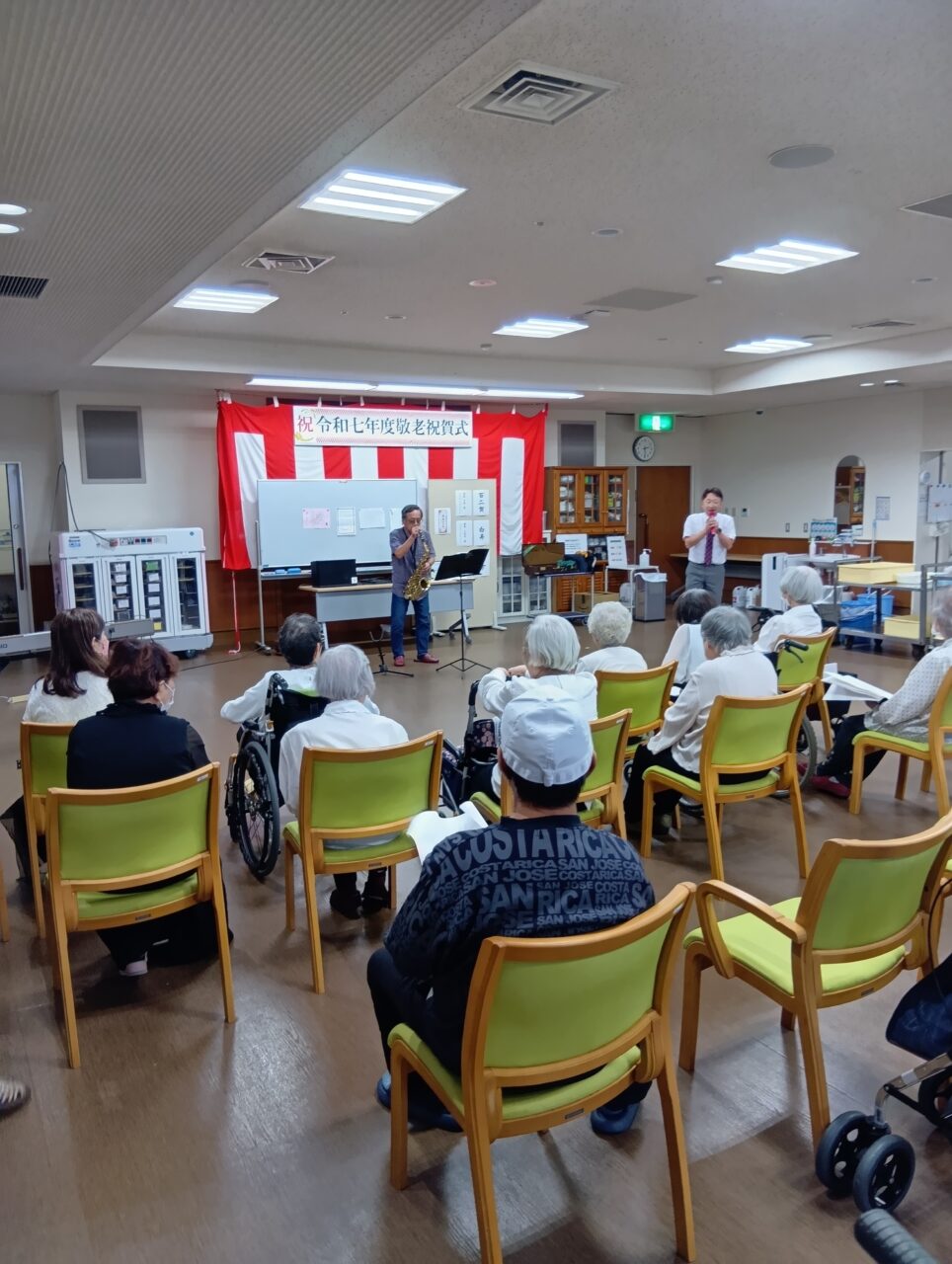 午後からの敬老アトラクションは、みさと園コーラスクラブのコンサート、ゲストにお越しいただきアルトサックスの演奏が取り行われました。