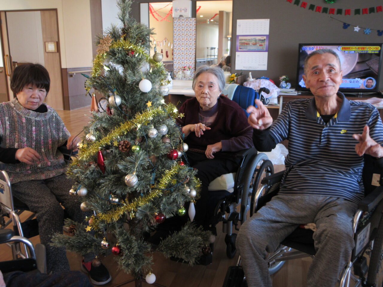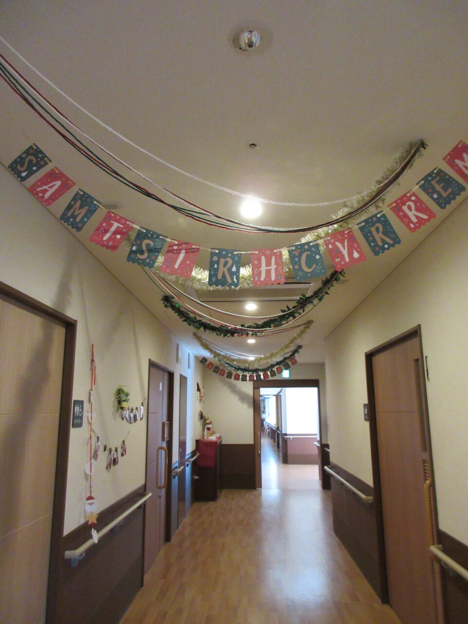 キラキラした飾りと、入居者さまの笑顔に、ユニット内は一足早くクリスマスのあたたかな雰囲気に包まれています。