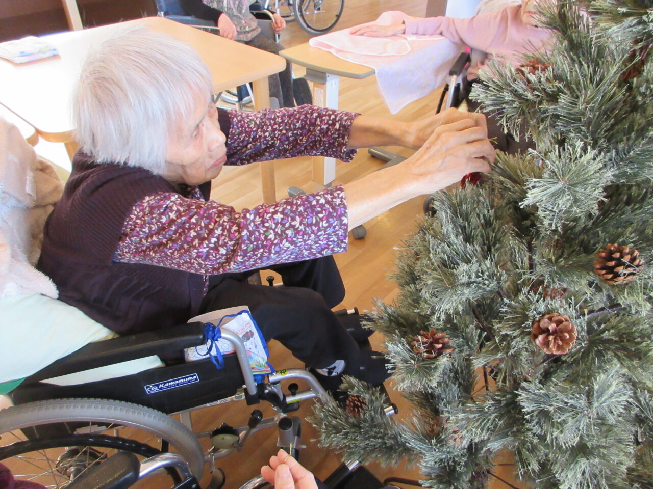 クリスマスツリーの飾りつけをしていると、そばで見守ってくださっていた入居者さまが、