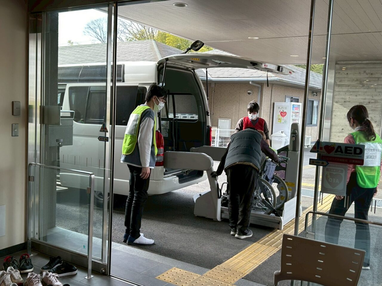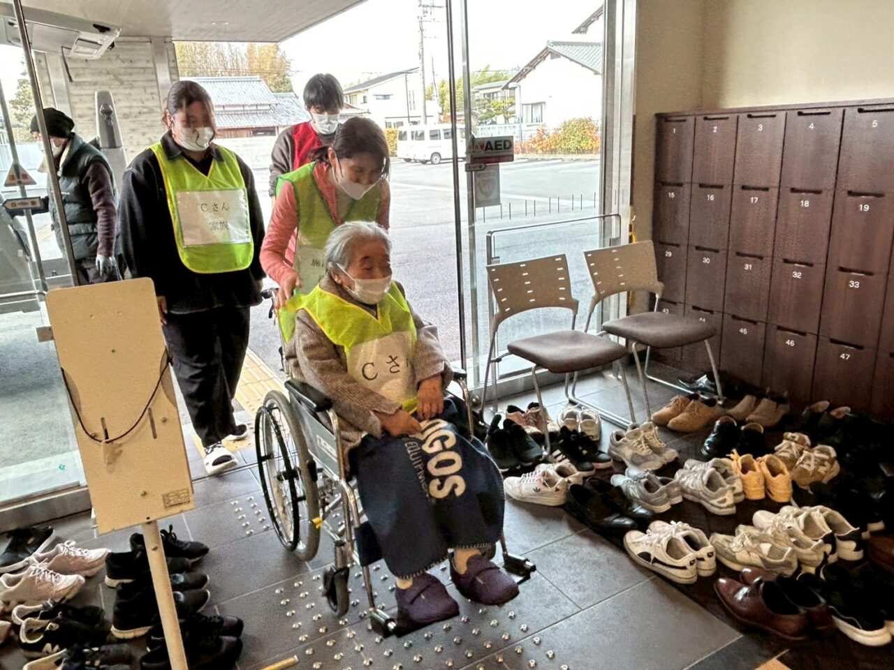 避難者の受け入れ時の訓練では、当施設で生活を送られている入居者も参加くださりました。