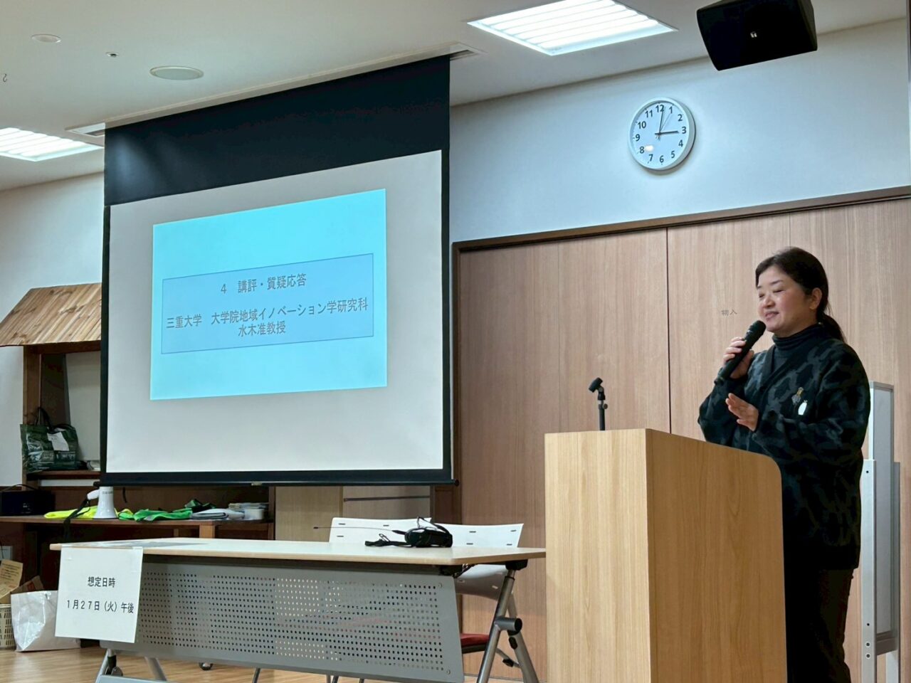 訓練の講評として、三重大学 水木准教授より回答を頂きました。有事の際の連携や訓練を通してのアドバイスはとても参考になりました。