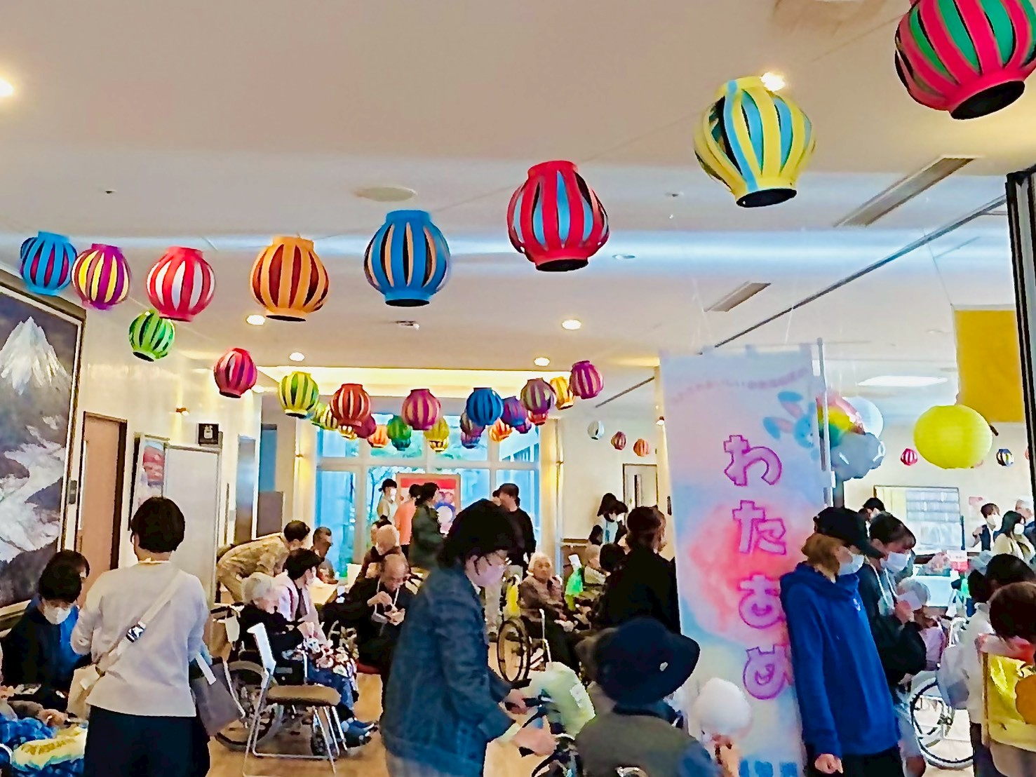 毎年多くのご家族や地域の方にもご参加いただき、ご入居者さまはお孫さんやひ孫さんと一緒にスイーツを食べたり、ゲームをしたりと笑顔あふれる時間を過ごされています。