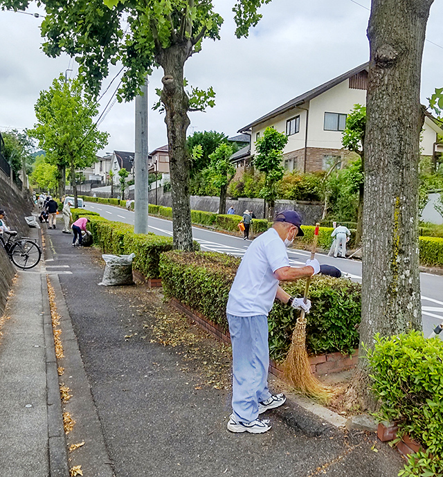 職員と入居者で百合が丘地区の周辺道路の清掃活動に取り組んでいます。